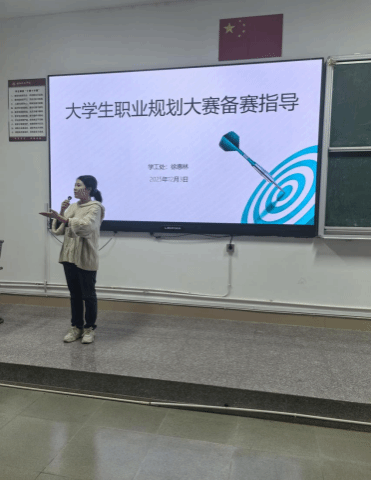 讲座伊始,学工处徐惠林老师从评分标准、作品框架、避坑指南三方面,结合往届获奖案例拆解备赛要点,演示“自我认知 - 职业分析 - 目标路径 - 行动计划”的作品黄金结构,并对参赛学生一对一指导。