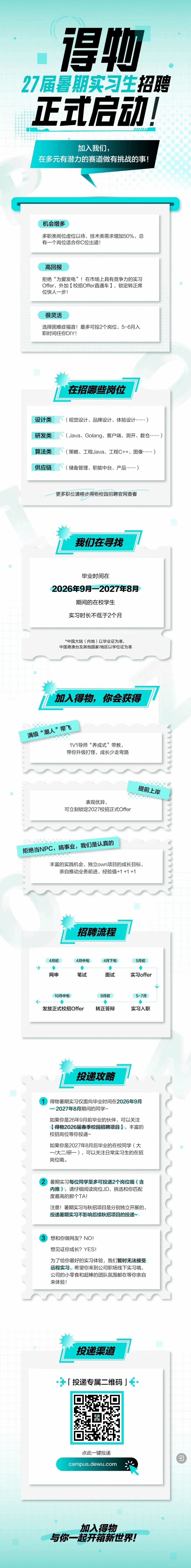 得物27届暑期实习生招聘正式启动